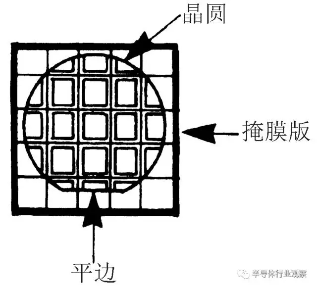 对准法则是次光刻只是把掩膜版上的Y轴与晶园上的平边成90º,如图所示。接下来的掩膜版都用对准标记与上一层带有图形的掩膜对准。对准标记是一个特殊的图形(见图),分布在每个芯片图形的边缘。经过光刻工艺对准标记就永远留在芯片表面,同时作为下一次对准使用。