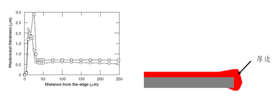 匀胶后在衬底边缘处会形成较厚的边(边珠效 应,这会影响到光刻的图形精度)。